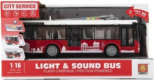 Otkrijte sjajan gradski autobus iz kolekcije City Service koji oduševljava realističnom izradom, crvenim dizajnom i jednostavnim upravljanjem. Zahvaljujući zamašnjaku dovoljno je lagano pogurnuti autobus i on će krenuti naprijed, dok svjetla i zvukovi daju igri autentičnu atmosferu gradskog prijevoza.