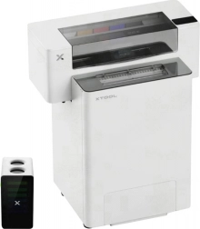 Kompletan „Print‑to‑Bake“ tijek rada: tisak, nanošenje ljepivog praha, poravnanje i pečenje jamče elastične, izdržljive i postojane otiske. Automatski OS1 Shaker Oven štedi prah zahvaljujući recikliranju i dvosmjernom radu. Pročistač zraka SafetyPro AP2 učinkovito uklanja prašinu i mirise. Softver xTool Creative Space (AI Design, RIP, Auto Nesting, Layout) pojednostavljuje pripremu podataka i upravljanje tiskom.