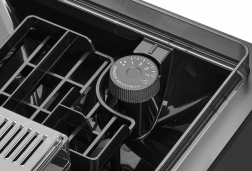 Upravljanje je brzo i udobno zahvaljujući dodirnoj ploči i LED zaslonu. Kavu možete pripremati od cjelovitih zrna ili mljevene kave, podesiti jačinu i količinu napitka, a zahvaljujući izvadivoj odlagnoj plohi stane i visoka čaša za latte.