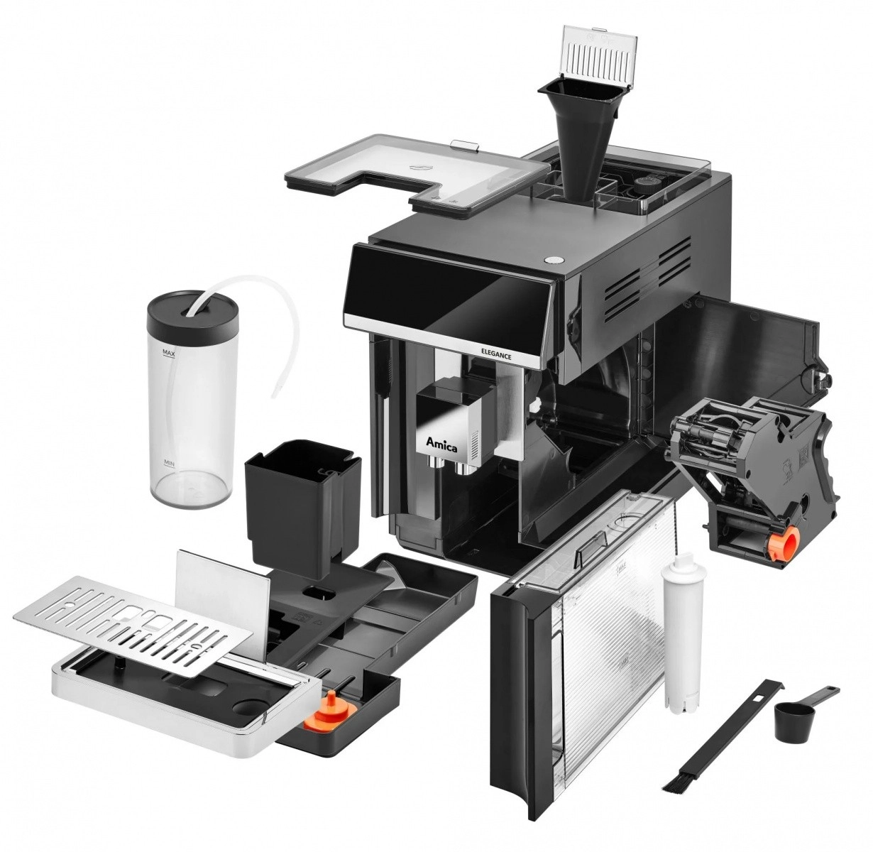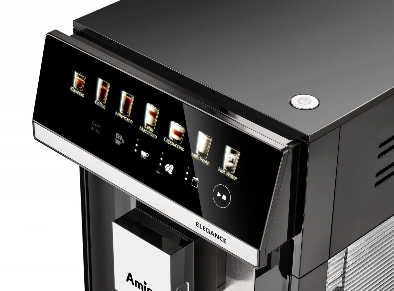 Amica Elegance pouzdan je automatski aparat za kavu za pripremu espressa, cappuccina i caffè lattea u savršenim omjerima. Zahvaljujući inox mlincu melje zrna neposredno prije ekstrakcije, a vi birate između 5 razina mljevenja za željeni intenzitet okusa. Visok tlak jamči puno aromu i kremastu pjenu, dok sustav SuperCrema upotpunjuje svaku šalicu bogatom cremom.