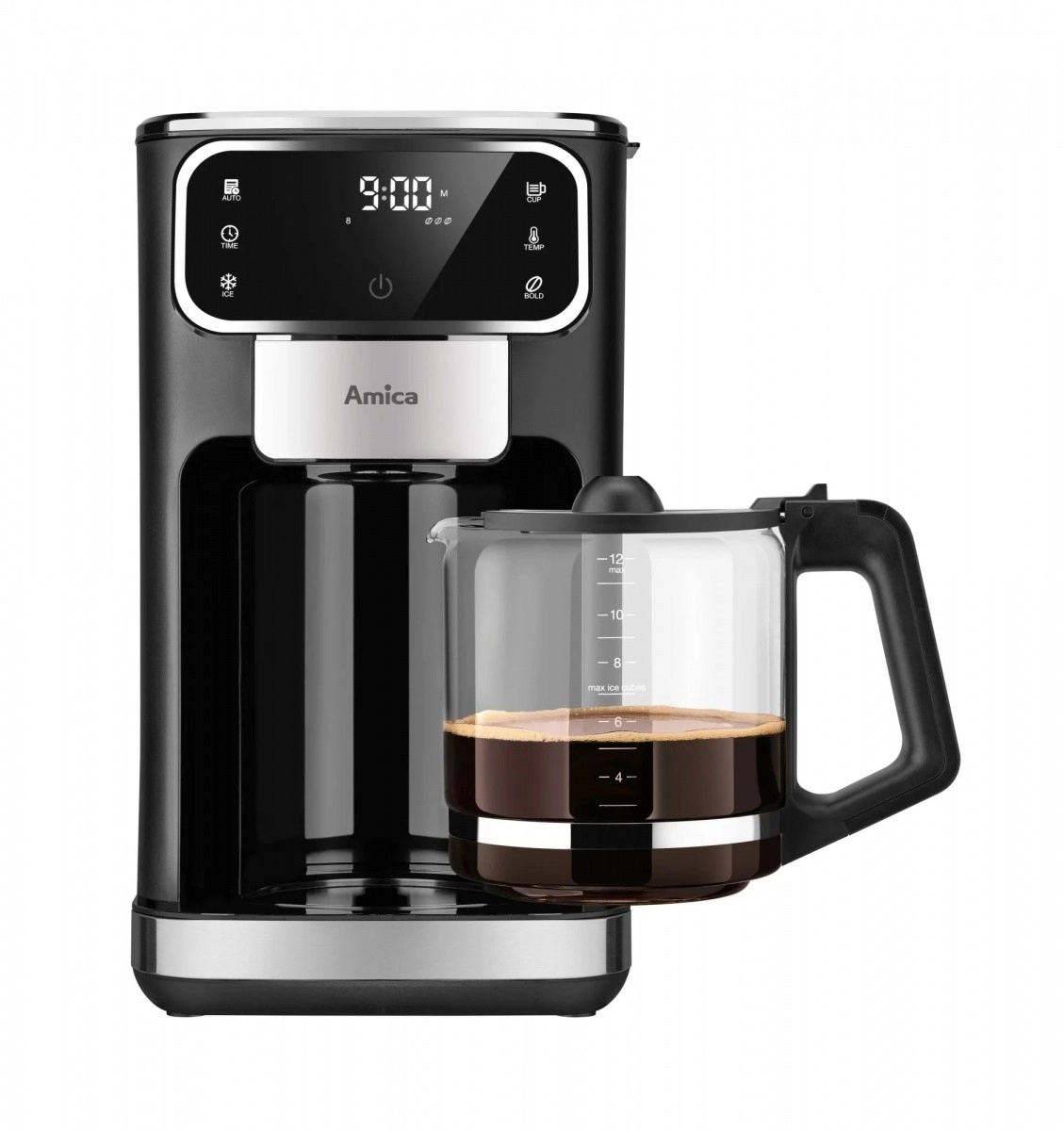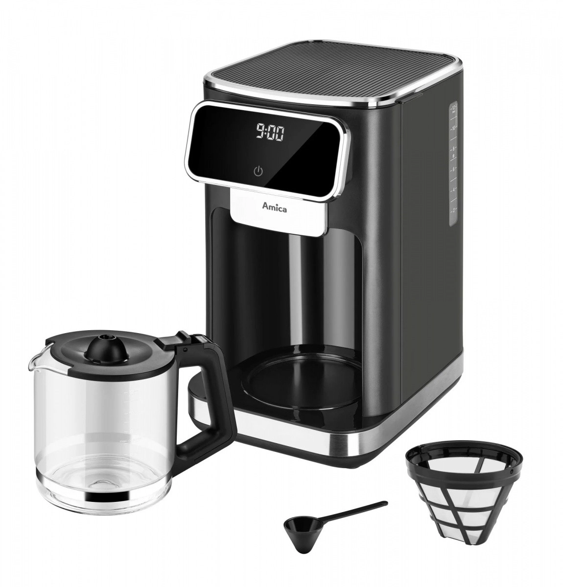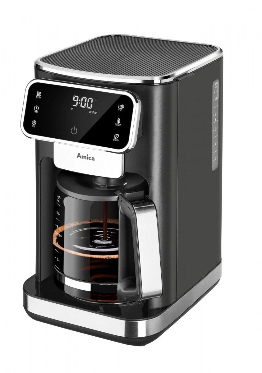 Filter aparat za kavu AMICA CD2011 osmišljen je za udobnu i pouzdanu pripremu kave kod kuće i u uredu. Intuitivna dodirna ploča bez mehaničkih tipki lako se čisti, a zahvaljujući LED ikonama uvijek znate koju jačinu i količinu kave ste postavili.