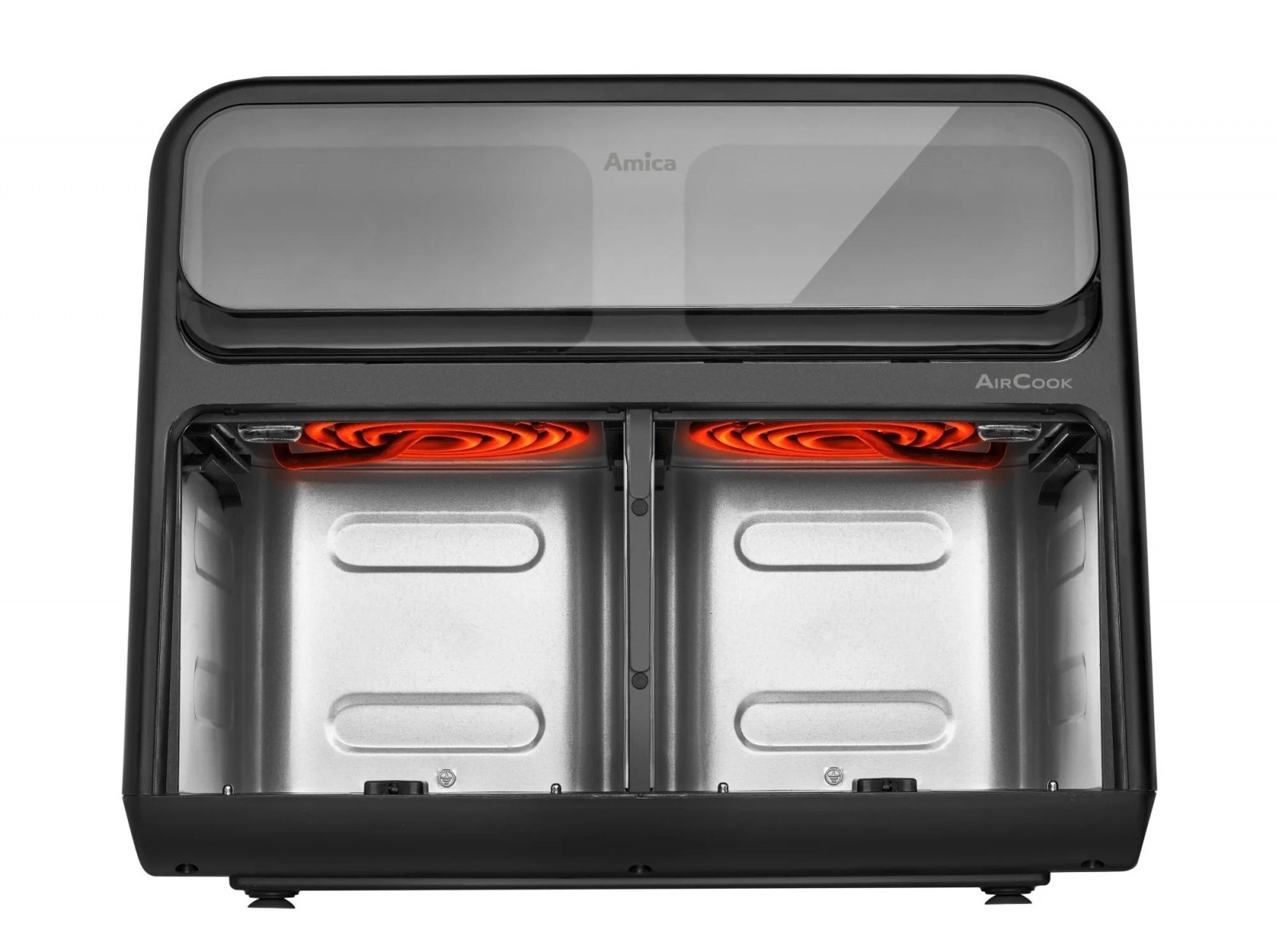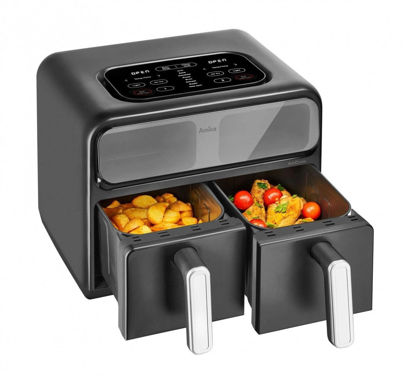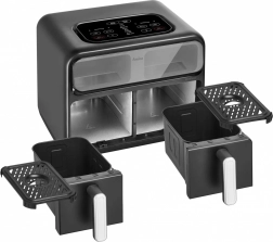 Ispecite hrskave krumpiriće, sočno meso i nježno pecivo uz minimum ulja zahvaljujući fritezi na vrući zrak s dvjema zonama. Dvije neovisne komore omogućuju istodobnu pripremu različitih jela, dok praktični prozorčić i dodirna ploča s LED zaslonom osiguravaju potpunu kontrolu nad temperaturom i vremenom. Iskoristite bogat izbor načina rada poput AirFry, Bake, Roast ili Dehydrate, funkcije Sinkronizacija i Udvostručena kapacitet štede vrijeme, a sigurnosne značajke poput automatskog isključivanja i zaštite od pregrijavanja pružaju mir pri kuhanju.