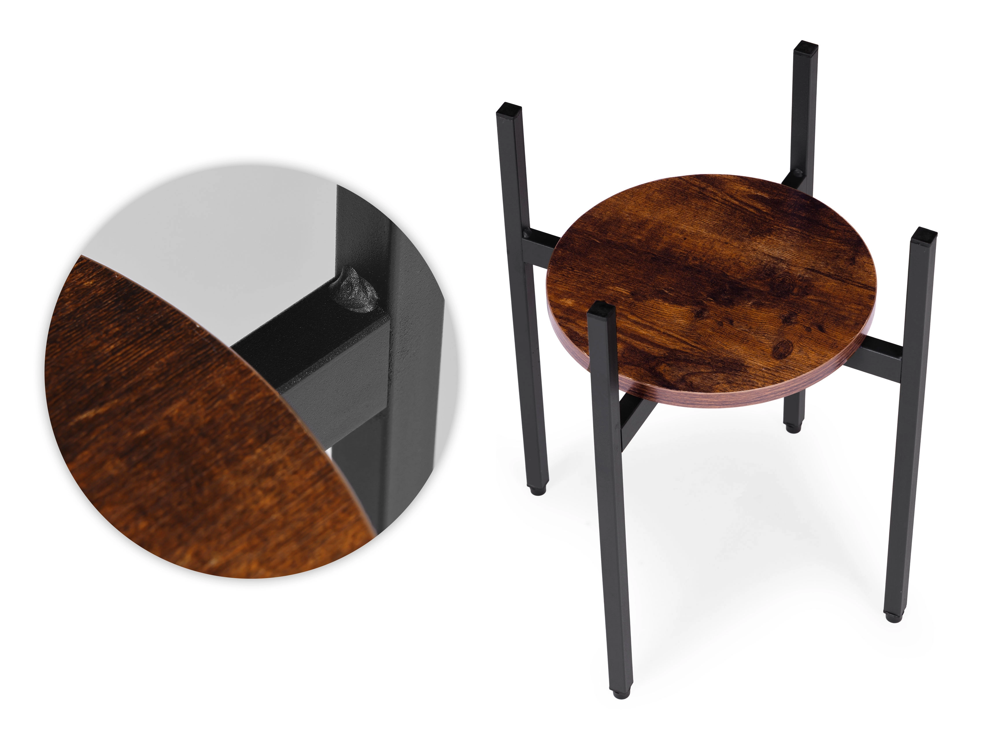 Izložite svoje omiljene biljke sa stilom i uz maksimalno iskorištenje prostora. Ovaj stalak u industrijskom duhu kombinira prašnasto lakirani čelik za dugi vijek trajanja i otpornost na koroziju s policom od iverice u dekoru prirodnog drva. Odlično se uklapa u moderne i minimalističke interijere te ističe zelenilo u svakoj prostoriji.