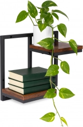 Uljepšajte svoj interijer praktičnom i modernom visećom policom u loft stilu. Minimalistički crni okvir od praškasto lakiranog čelika i dva izdržljiva polična elementa s dekorom drva stvaraju stilski prostor za vaše biljke, knjige ili manje dekoracije. Zahvaljujući kompaktnim dimenzijama pristaje dnevnoj sobi, kuhinji i kupaonici.