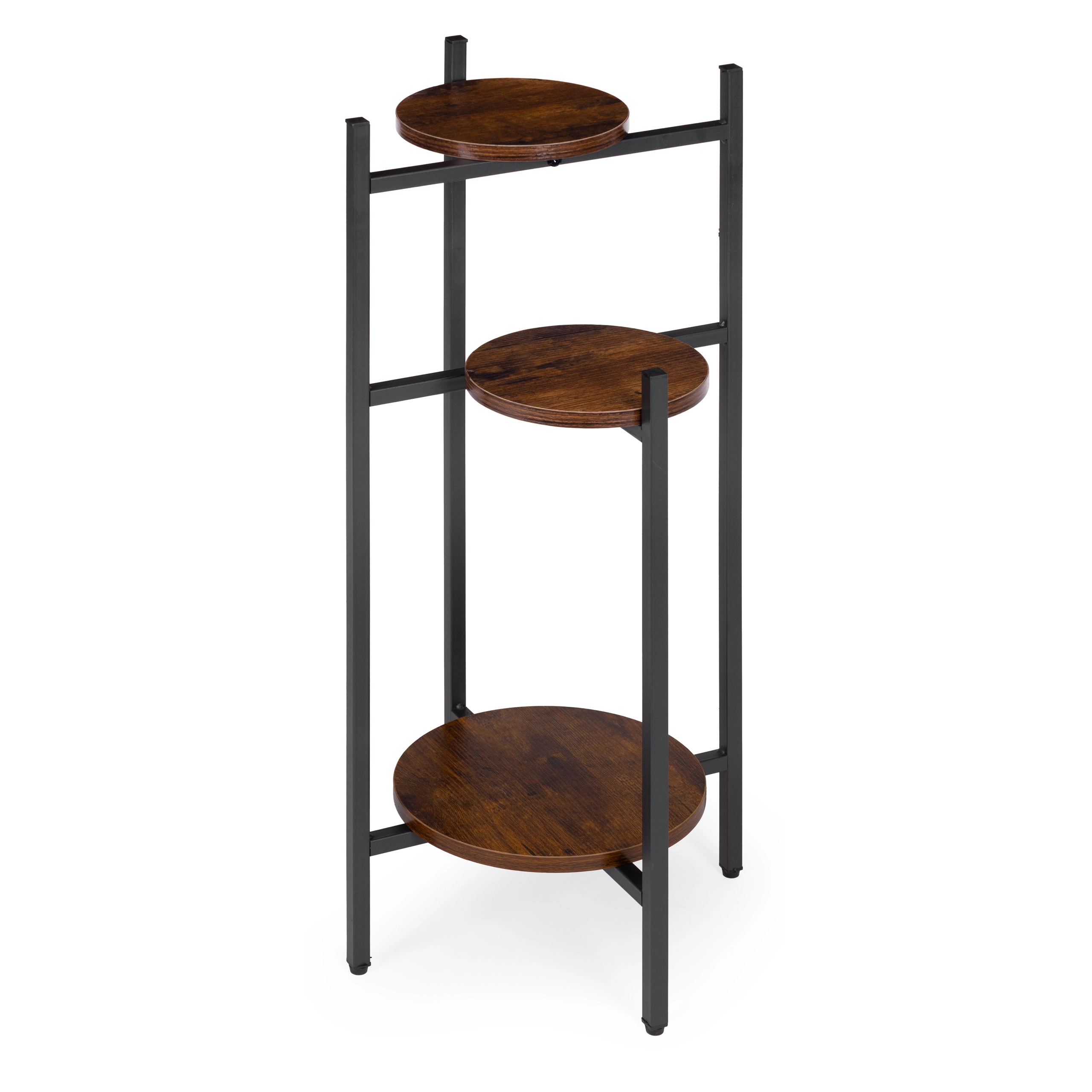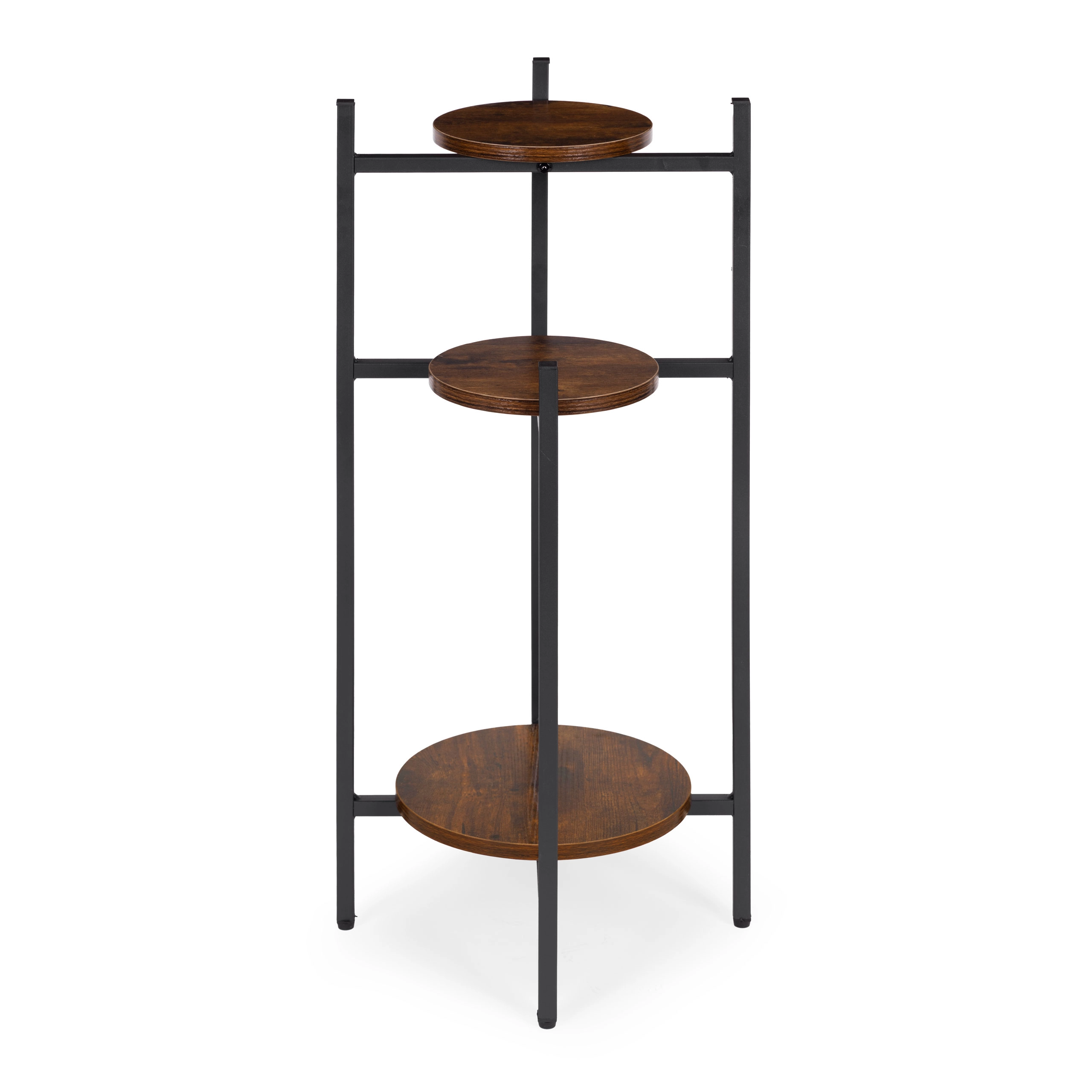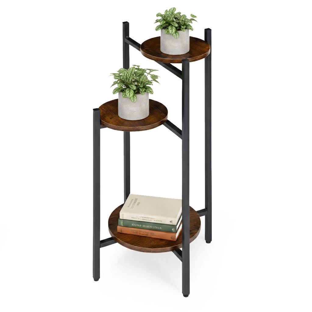 Tri okrugle police u različitim visinama omogućuju izlaganje više biljaka bez zauzimanja dragocjene podne površine. Idealno za kutove, uz prozor ili pored sofe.