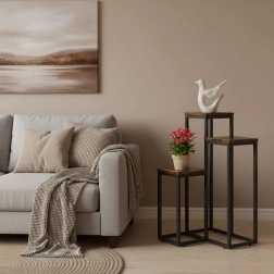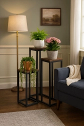 Izložite svoje omiljene sobne biljke stilski i pregledno. Loft stalak za cvijeće spaja industrijski izgled s praktičnim rješenjem za svakodnevnu uporabu – tri visinski postepeno raspoređene police olakšavaju njegu biljaka, poboljšavaju pristup svjetlu i uljepšavaju interijer. Zahvaljujući univerzalnim dimenzijama prikladan je za dnevni boravak, radnu sobu, hodnik i kuhinju za začinsko bilje.