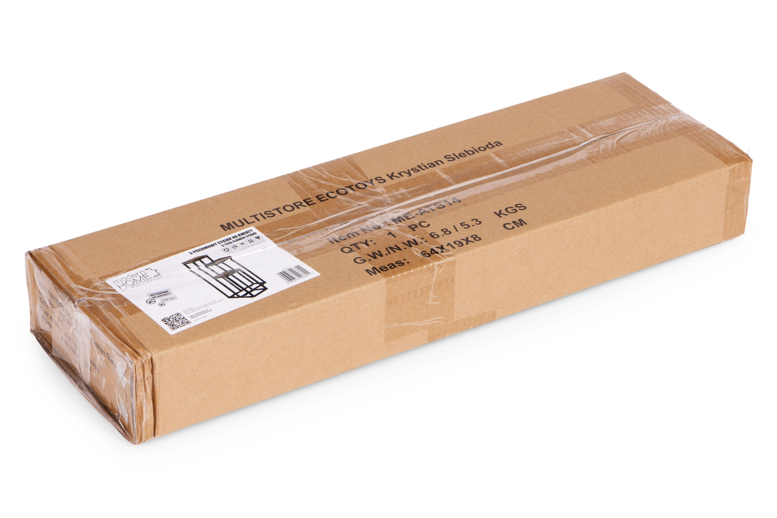 Okvir od čelika s praškastim premazom odolijeva koroziji i mehaničkom trošenju, dok ploče u dekoru prirodnog drva naglašavaju moderni loft karakter. Protuklizne nožice povećavaju stabilnost i štite pod od ogrebotina. Maksimalna nosivost od 5 kg idealna je za većinu tegli i dekoracija.