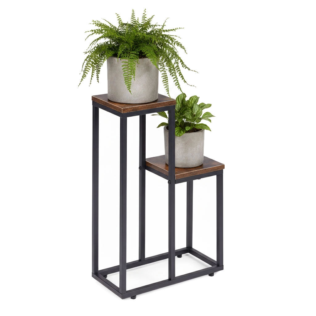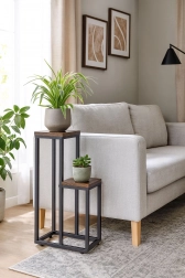 Izložite svoje omiljeno cvijeće, začinsko bilje ili dekoracije stilski i pregledno. Stalak za cvijeće u loft dizajnu spaja moderan izgled s izdržljivom izradom, pa se uklapa u svaki interijer – od dnevnog boravka i kuhinje do radne sobe. Dvije različite visine polica omogućuju efektne aranžmane visećih i uspravnih biljaka.