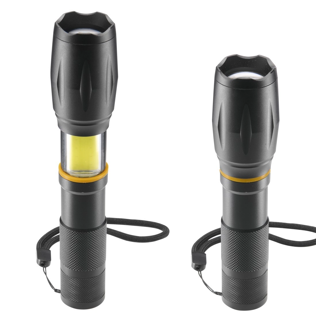 Ova univerzalna džepna svjetiljka kombinira snažnu prednju LED s bočnim COB LED panelom za maksimalnu fleksibilnost. Lako birate jako, prigušeno ili trepćuće svjetlo, dok vam zum objektiv omogućuje precizno usmjeravanje snopa prema potrebi. Teksturirano kućište s protukliznom obradom i remen za zapešće osiguravaju sigurno držanje i ugodno nošenje.