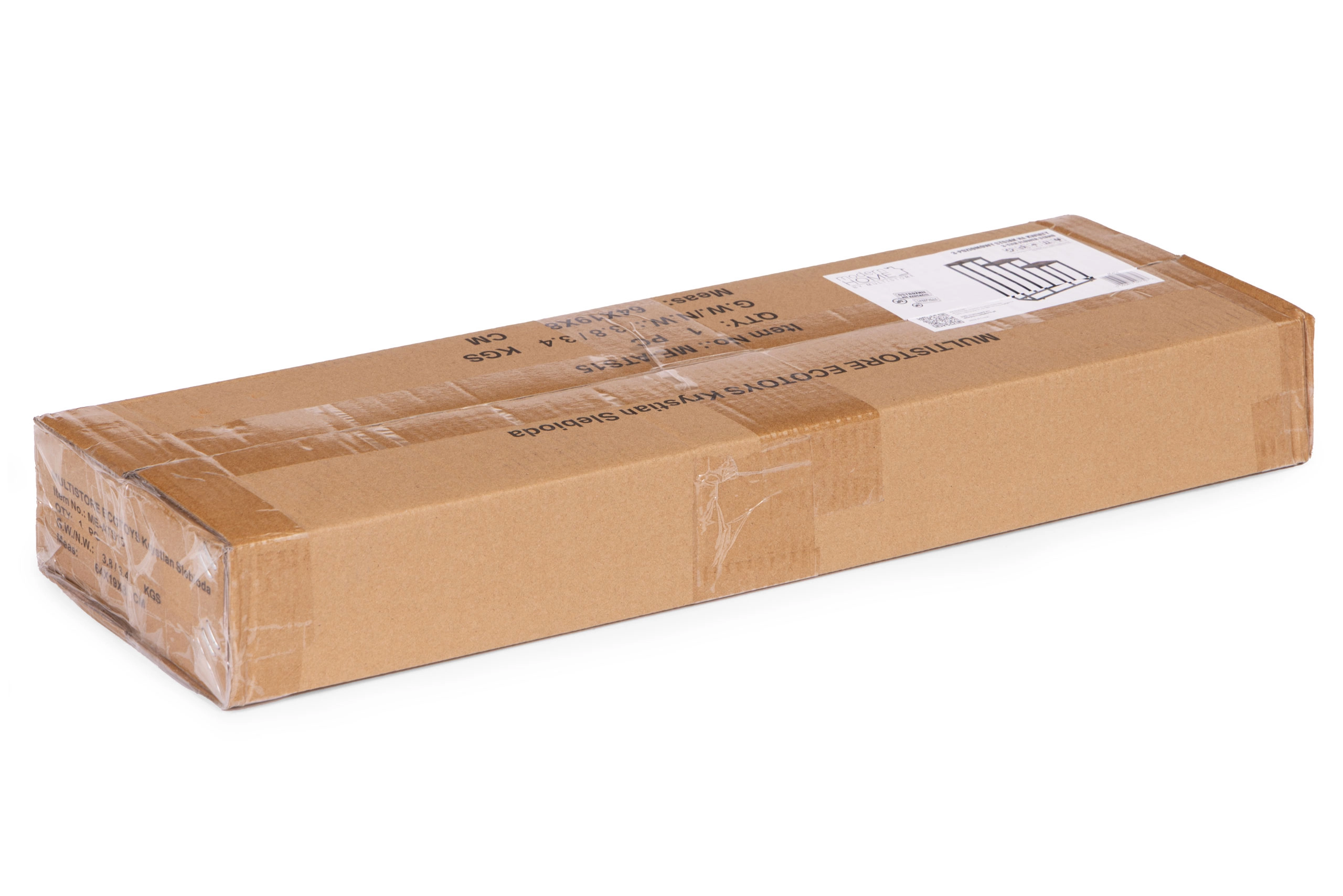Okvir od praškasto lakiranog čelika odolijeva koroziji i mehaničkom habanju, dok police od laminirane DTD iverice u prirodnom drvenom dekoru naglašavaju moderan izgled. Protuklizne nožice osiguravaju stabilnost i štite pod od ogrebotina.