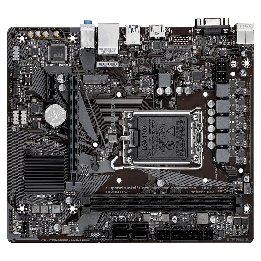 Sastavite pouzdano računalo za rad i zabavu. Ova mATX ploča s čipsetom Intel H610 podržava procesore Intel Core 12., 13. i 14. generacije na ležištu LGA1700 te donosi modernu opremu u kompaktnom izdanju. Zahvaljujući dvokanalnoj memoriji DDR5 i utoru NVMe M.2 (PCIe 3.0 x4) lako ćete postići brzi odaziv sustava i aplikacija.