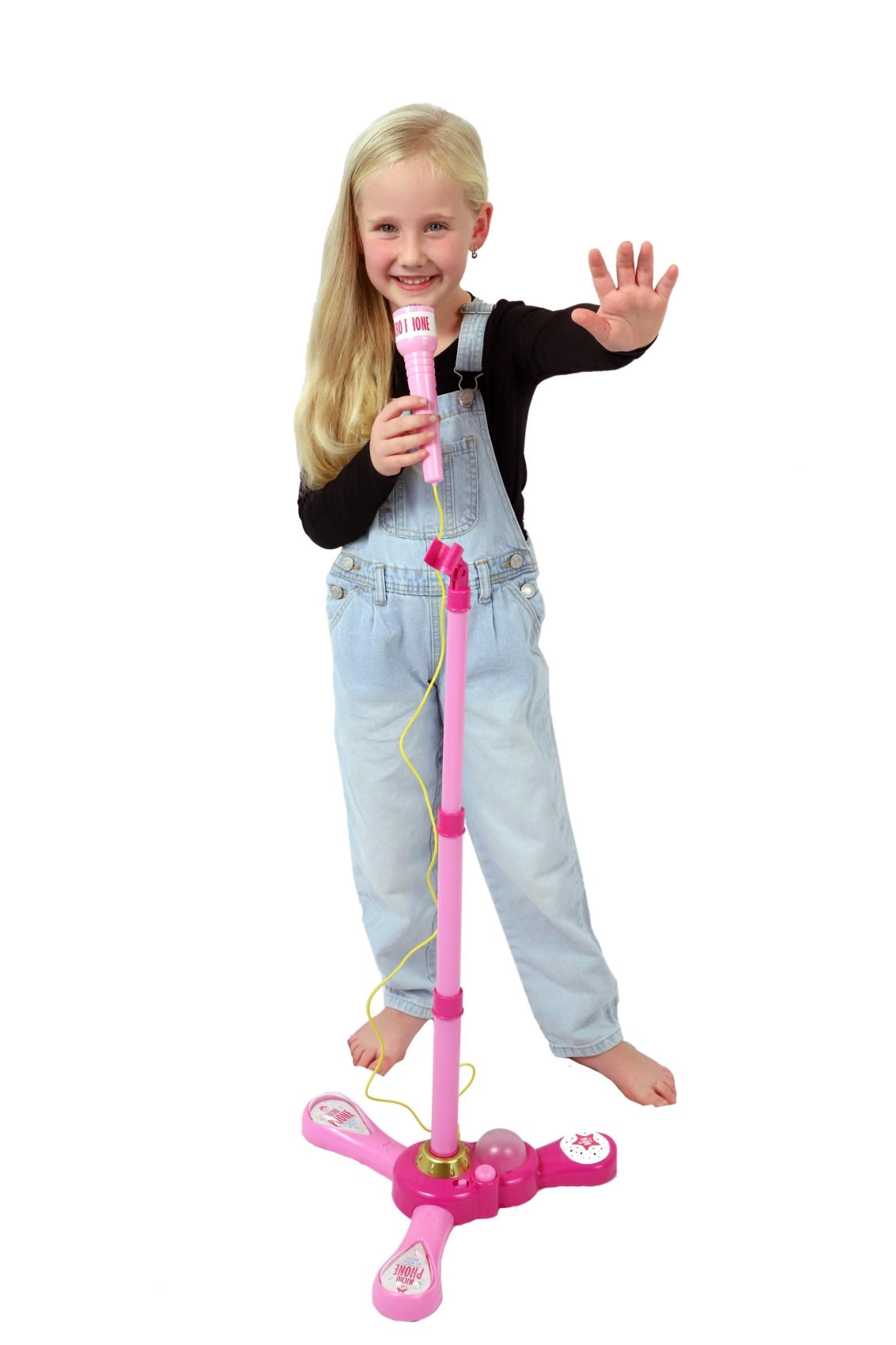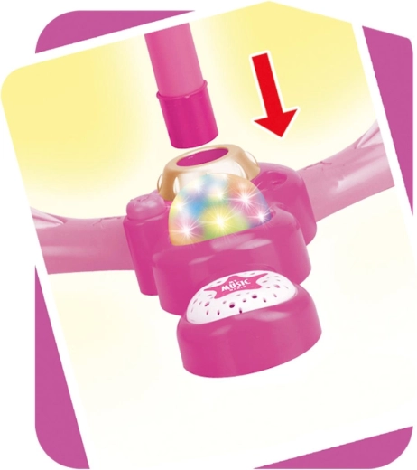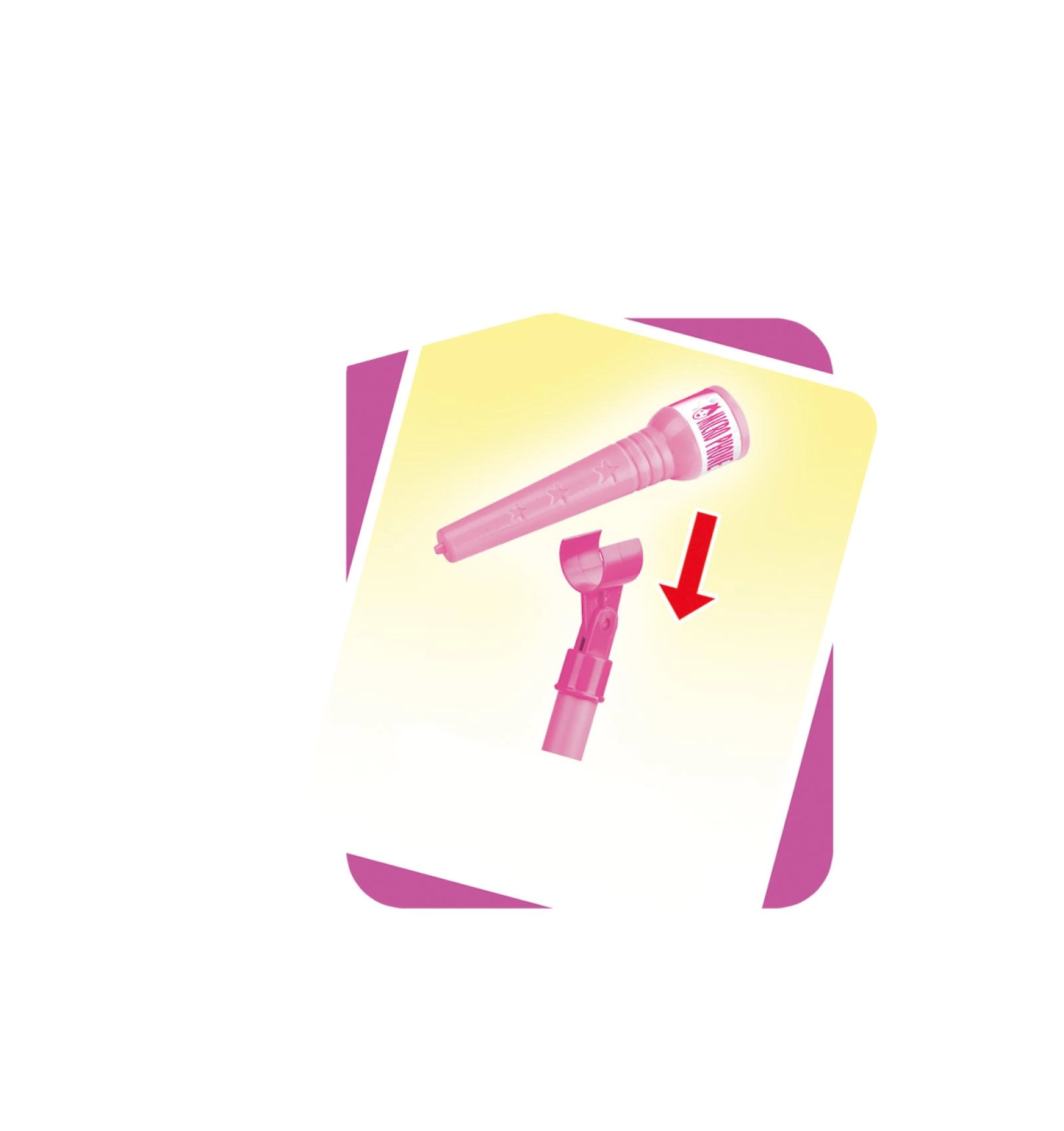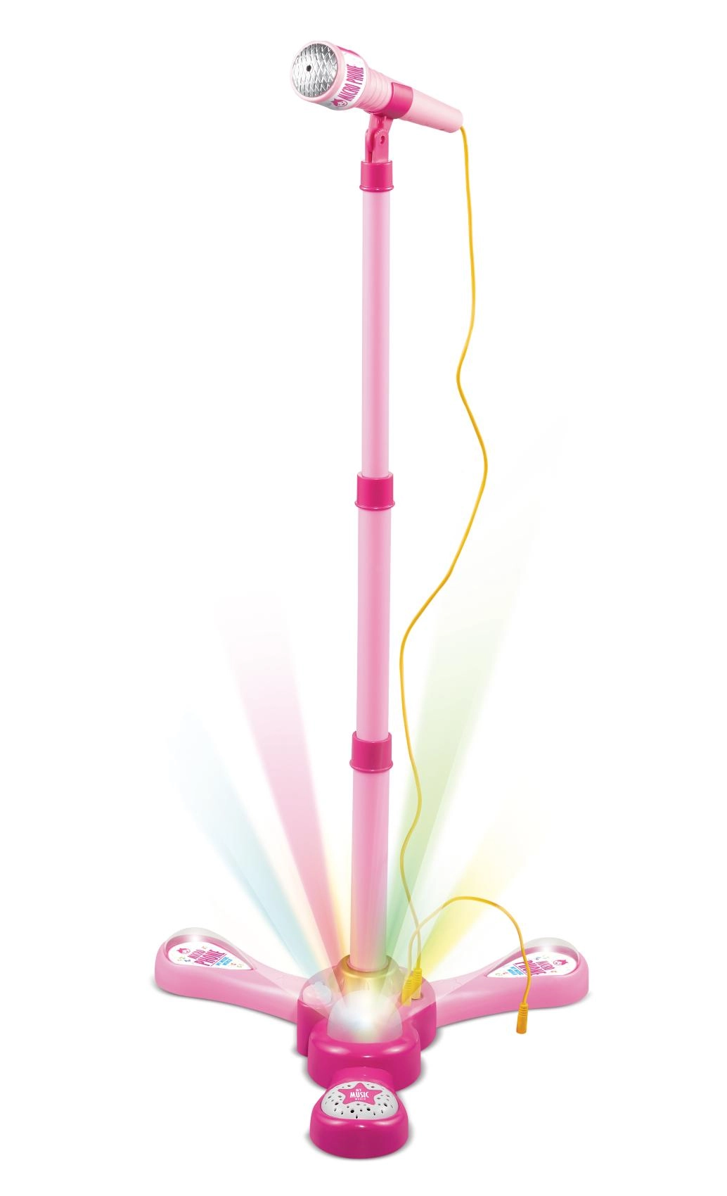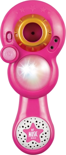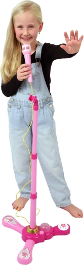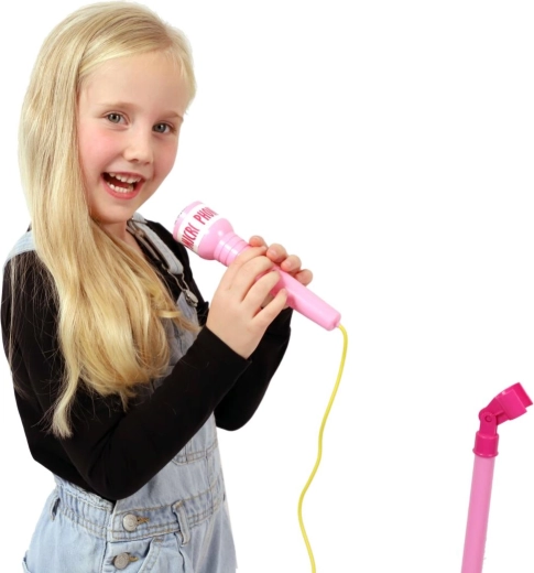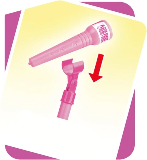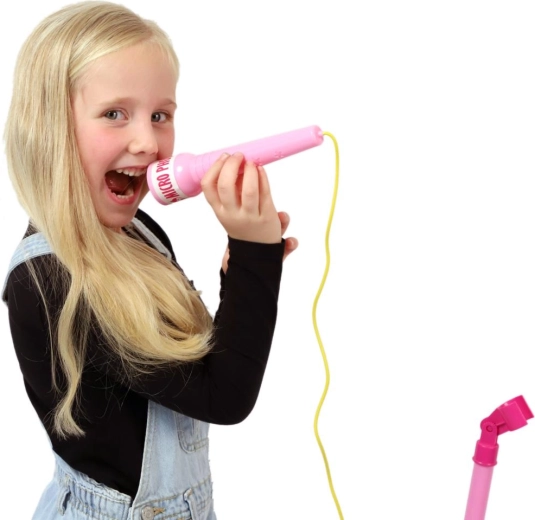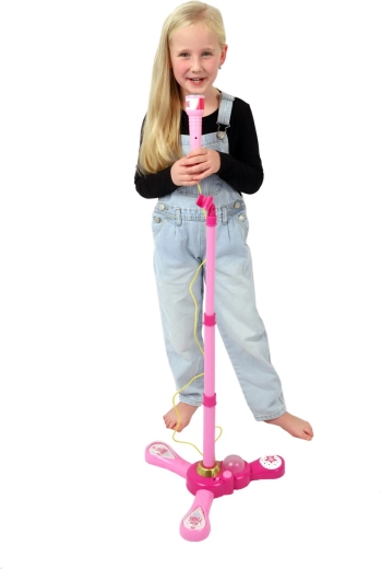 Ružičasti karaoke mikrofon na stalku pretvara svaku dječju sobu u pozornicu. Nudi 12 ugrađenih pjesama, šarene svjetlosne efekte i mogućnost spajanja MP3 uređaja ili mobitela. Zahvaljujući podesivoj visini 40–80 cm raste s djetetom i idealan je za male pjevače od 3 godine.