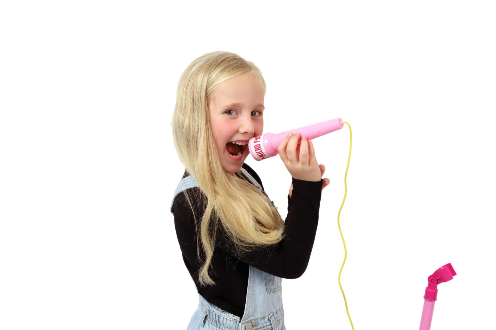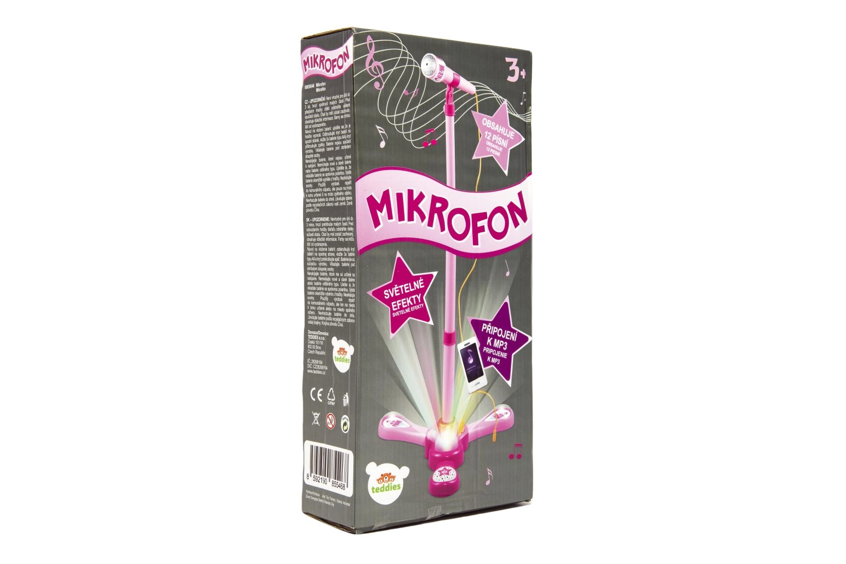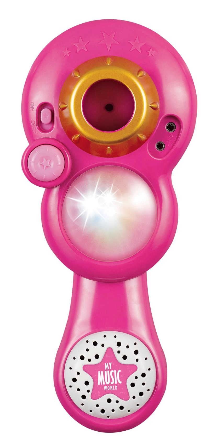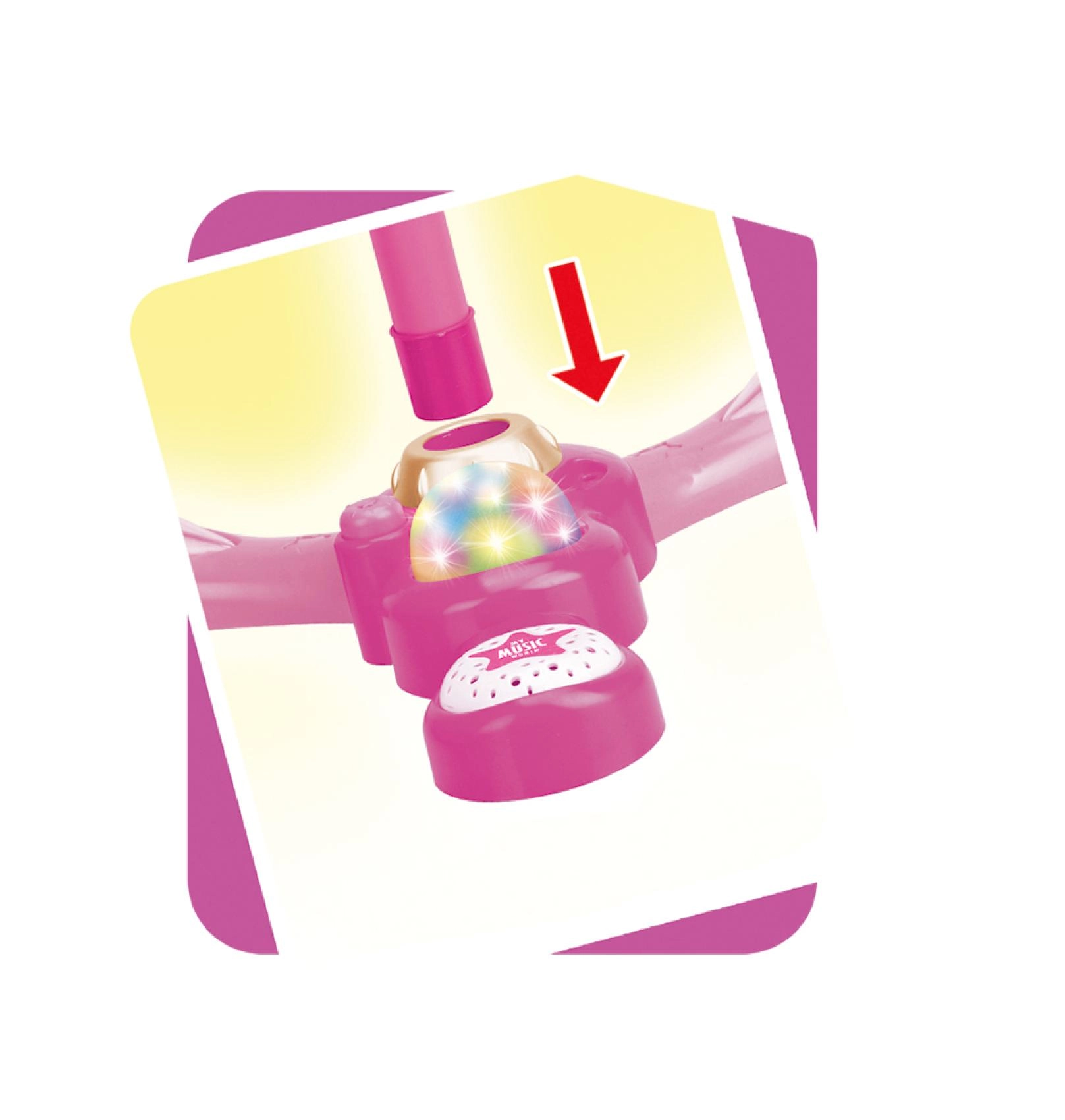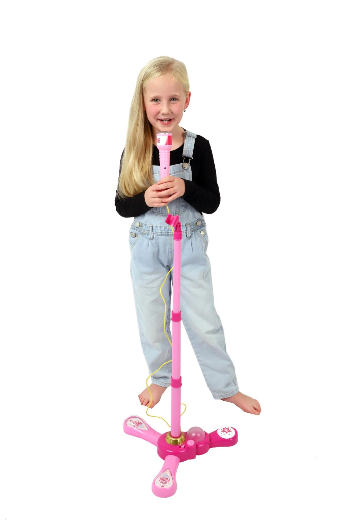 Ružičasti karaoke mikrofon na stalku pretvara svaku dječju sobu u pozornicu. Nudi 12 ugrađenih pjesama, šarene svjetlosne efekte i mogućnost spajanja MP3 uređaja ili mobitela. Zahvaljujući podesivoj visini 40–80 cm raste s djetetom i idealan je za male pjevače od 3 godine.