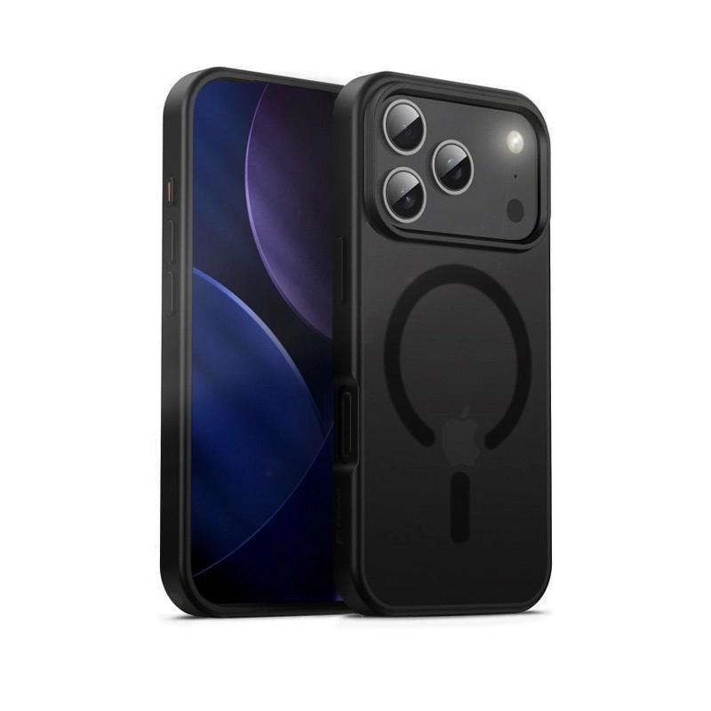 Maskica Hybrid Frost MAG za iPhone 17 Pro kombinira čvrstu polikarbonatnu stražnju ploču s mat završnom obradom koja smanjuje otiske prstiju i održava telefon čistim. Integrirani magnetski prsten s preciznim pozicionirajućim magnetom osigurava pouzdanu kompatibilnost sa svim MagSafe dodacima – od punjača i držača za automobil do novčanika.