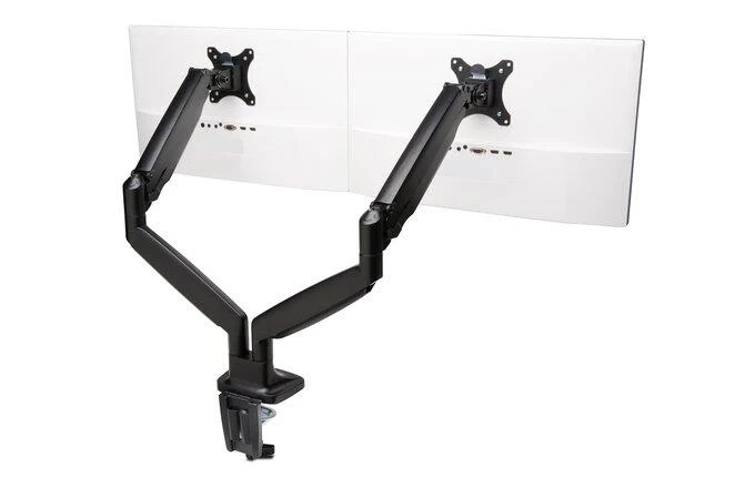 Izdržljivo metalno kućište za monitore 13–34" do 9 kg po ruci. Integrirano vođenje kabela održava red i više prostora na radnoj površini.