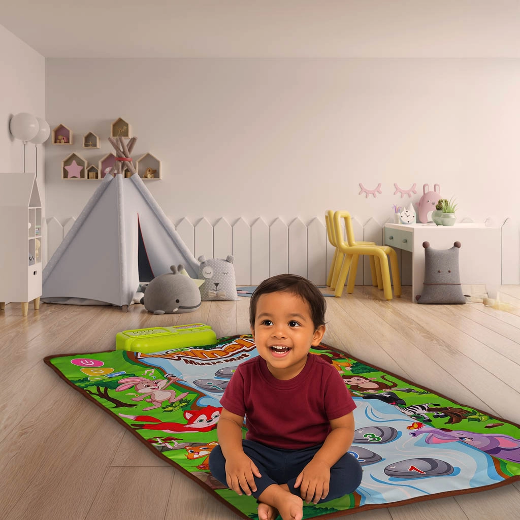 Ova šarena glazbena podloga za djecu pretvara svaki dan u radosnu igru. Ponumerirana polja uvode djecu u svijet tonova C-dur, dok ih simpatične životinjice uče prepoznavati zvukove i boje. Meka i lagana površina ugodna je za igru na podu i lako se prenosi.