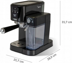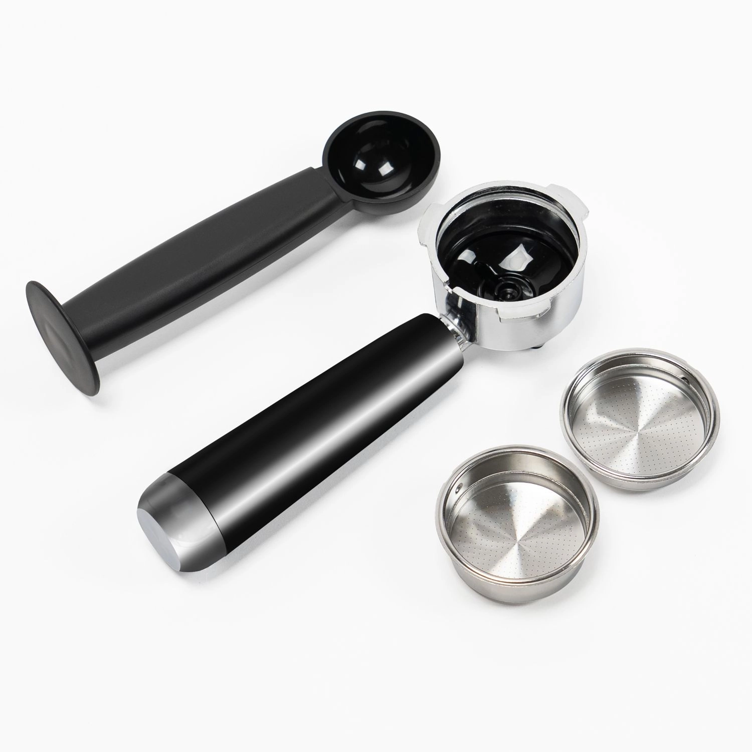 Upravljanje je intuitivno putem elektroničkog LED panela s pozadinski osvijetljenim tipkama. Prilagodite jačinu i volumen napitka, grijač šalica održava idealnu temperaturu, a indikator razine vode omogućuje potpunu kontrolu. U pakiranju su portafilter 52 mm, dvije košarice za 1–2 šalice i tamper – sve što trebate za početke kućnog baristanja.