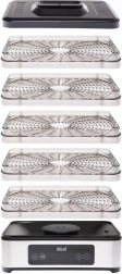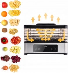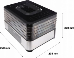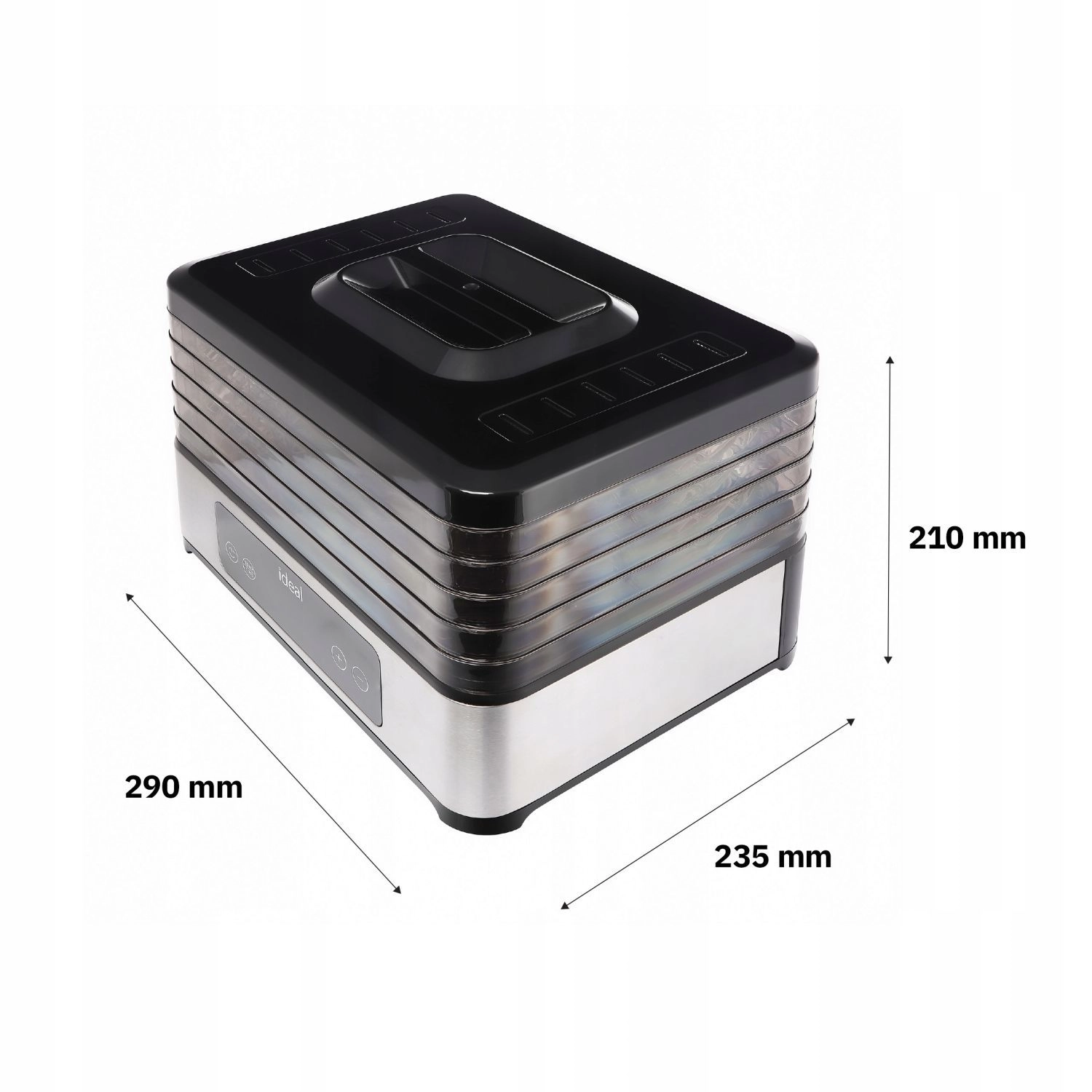 Upravljanje je maksimalno jednostavno zahvaljujući elektroničkom LED panelu s timerom od 30 minuta do 24 sata. Tih i energetski učinkovit rad prikladan je za noćno sušenje, a prozirno kućište omogućuje kontinuirano praćenje procesa bez otvaranja. Pladnjevi imaju podesivu visinu za različite veličine kriški, a uređaj se lako rastavlja i čisti.