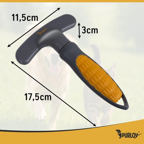 Purlov češalj s rotirajućim i pokretnim zupcima lako se nosi s čvorovima i zapetljanjima, bez čupanja zdrave dlake. Dvostruki red zubaca od nehrđajućeg čelika učinkovito skuplja poddlaku i otpalu dlaku sve do kože, pa je izvrstan izbor za svakodnevnu i dubinsku njegu.