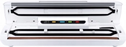 Zahvaljujući načinima rada Nježno, Suho i Vlažno lako prilagođavate snagu vrsti namirnica. Upravljanje One Touch pojednostavljuje rad – jednim dodirom uređaj otvarate ili zatvarate. Ugrađeni spremnik s rezačem omogućuje precizno i čisto rezanje folije, pa je pakiranje brzo i pregledno.