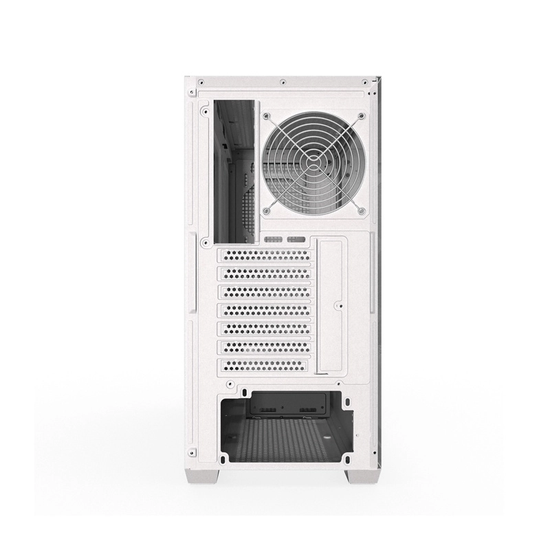 Prostrana unutrašnjost prima grafičke kartice do 425 mm, hladnjake CPU-a do 170 mm i zahvaljujući 7 PCI utora omogućuje proširene konfiguracije. Bočna stranica od kaljenog stakla na šarkama s brzim otpuštanjem ubrzava nadogradnje i održavanje. Gumene probojnice i promišljeno vođenje kabela drže sklop urednim, a estete će razveseliti čiste linije u bijeloj boji.