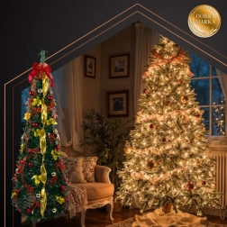 Uživajte u čaroliji Božića bez dodatnog truda. Drvce RUHHY ima pametnu pop-up konstrukciju, pa ga postavite i sklopite u trenu. Elegantna kombinacija zlatne i crvene djeluje svečano i bezvremenski, savršeno se uklapa u dnevni boravak, ured i manje stanove.