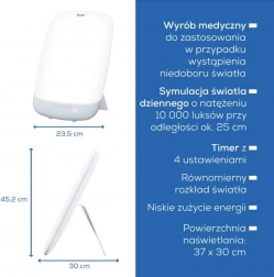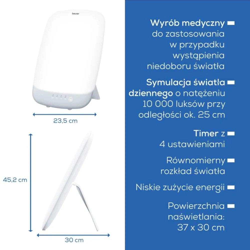 Lampa dnevnog svjetla BEURER TL 85 dizajnirana je za učinkovitu svjetlosnu terapiju u razdobljima kada nedostaje sunčeva svjetlost. Zahvaljujući modernoj LED tehnologiji pruža iznimno ujednačeno i jako svjetlo koje oponaša dnevno svjetlo te pomaže kod osjećaja umora, niske razine energije i lošijeg raspoloženja.