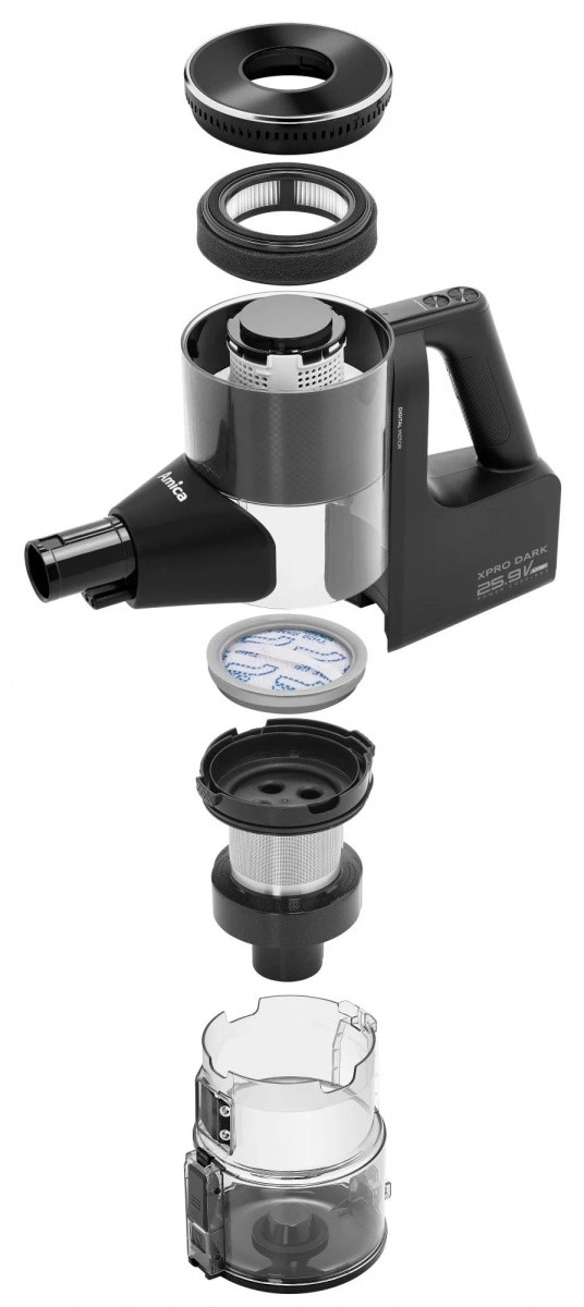 Sigurnost osiguravaju zaštita baterije od pregrijavanja i mekani start s postupnim povećanjem snage. U kompletu je praktičan stalak za usisavač i dodatke – bez bušenja, gdje god vam odgovara. Dodatni predmotorni filter produljuje vijek trajanja motora i pomaže održati stabilnu usisnu snagu.