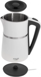 Kuhalo ADLER AD 1355 nudi brzo zakuhavanje vode, tihi rad i sigurnu upotrebu zahvaljujući dvostrukoj stijenci. Unutrašnjost od nehrđajućeg čelika jamči čist okus vode i jednostavno održavanje, dok ravno grijaće tijelo ubrzava zagrijavanje i olakšava uklanjanje kamenca.