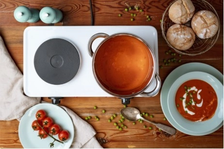 Promjeri 185 mm i 155 mm pokrivaju uobičajene lonce i tave, pa možete istovremeno kuhati juhu i pripremati prilog.