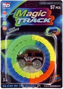 Uživajte u sjajnim utrkama sa svjetlećom fleksibilnom trkaćom stazom koju ćete lako sastaviti prema vlastitoj mašti. Dijelovi se jednostavno spajaju, a stazu možete u svakom trenutku preoblikovati – ravnine, zavoje pa čak i petlje savladava zahvaljujući savitljivim segmentima bez problema.
