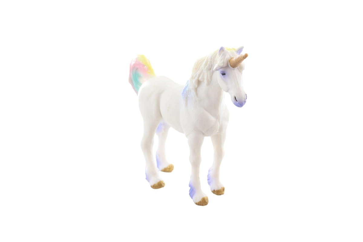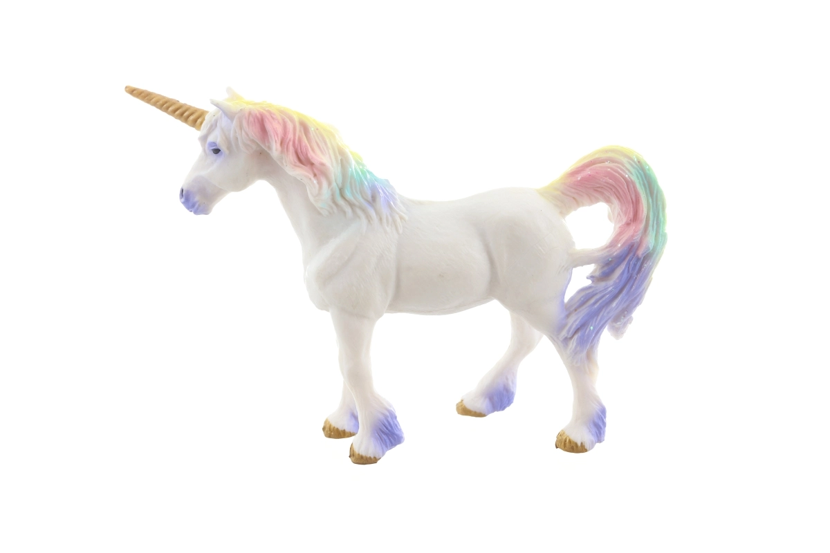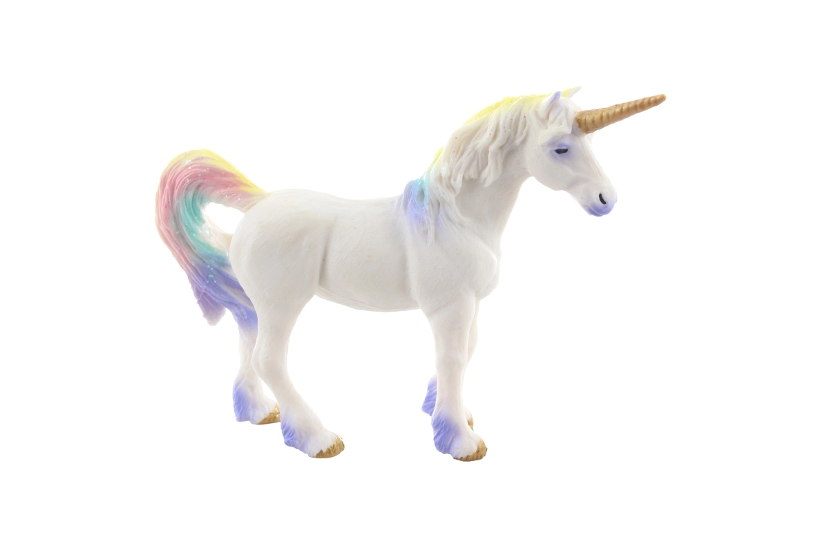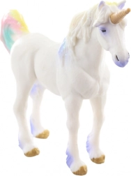 Ovaj elegantni jednorog u bijeloj boji sa zlatnim rogom i pastelnom duginom grivom očarat će realističnim modeliranjem i nježnim šarenim naglascima. Odlično pristaje za maštovitu igru, pripovijedanje priča i kao dekoracija dječje sobe.