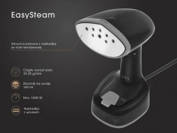 Funkcija vertikalnog parenja omogućuje uređivanje sakoa, haljina ili zavjesa izravno na vješalici. Sklopiva ručka i kompaktne dimenzije čine EasySteam izvrsnim suputnikom na putu, dok spremnik za vodu zapremine 160 ml dostaje za brze preinake nekoliko komada odjeće.