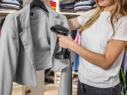 Uredite odjeću izravno na vješalici. Sklopiva ručka štedi prostor i čini uređaj idealnim izborom za dom i putovanja.