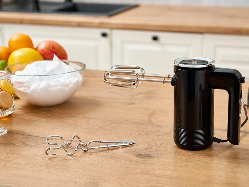 Zahvaljujući 5 stupnjevima brzine lako ćete prilagoditi tempo pripremanim sastojcima. Nehrđajuće metlice savršeno će umutiti bjelanjke ili vrhnje, a kukasti nastavci olakšavaju pripremu dizanih i maslenih tijesta. Jednostavna zamjena nastavaka pomoću gumba Eject i intuitivne kontrole štede vrijeme i trud.