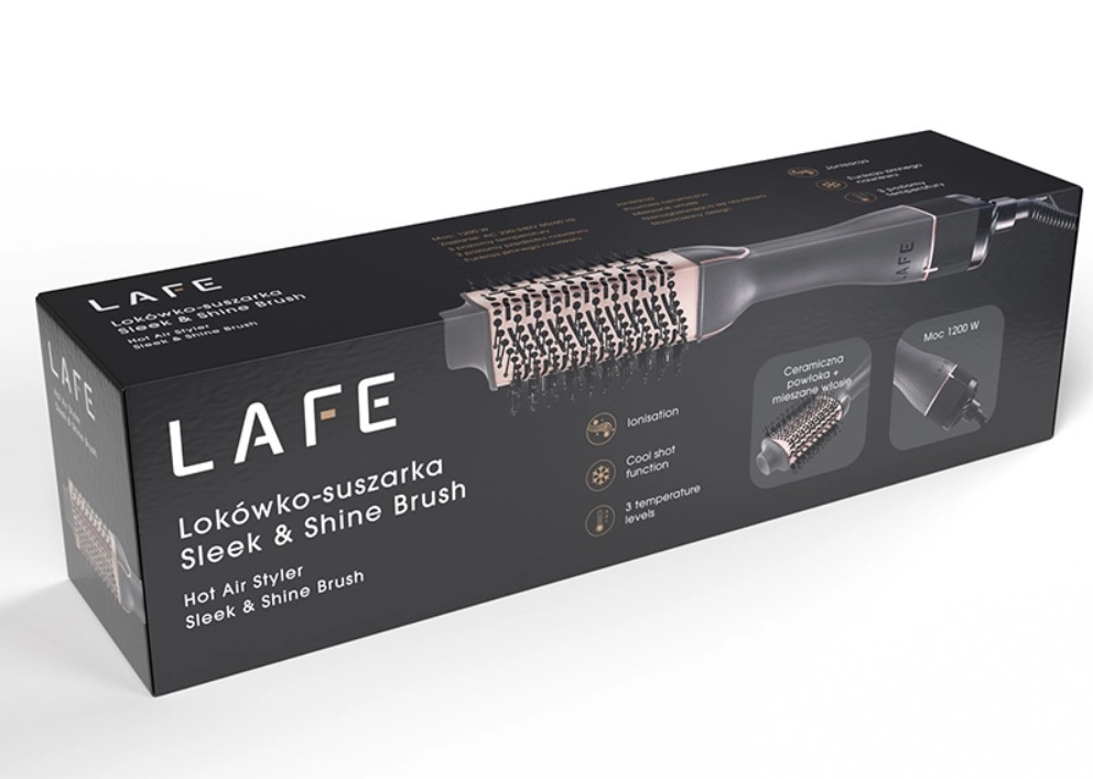 Toplinska četkica LAFE Sleek & Shine Brush kombinira funkcije sušila i uvijača za brzo uređivanje frizure jednim potezom. Ionizacija smanjuje statički elektricitet i ukroćuje neposlušne vlasi, pa ostaju glatke, sjajne i podatne.
