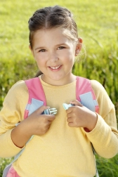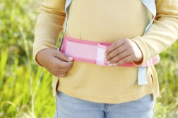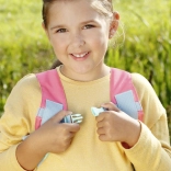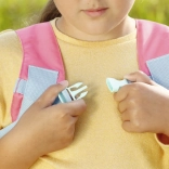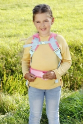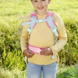 Mekane podstavljene naramenice, prsna kopča i pojas za bok osiguravaju stabilnost, dok se podesive kopče lako prilagođavaju dječjoj građi. Nježni cvjetni i park motivi s vilin konjicima i lopočima daju dodatku čaroban izgled koji potiče maštu.