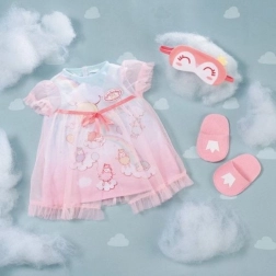 S ovom noćnom košuljom Baby Annabell se osjeća kao na oblaku. Zahvaljujući gornjoj suknjici od tila i veselim motivima ovčica, vaša lutka će rado ići spavati svaku noć. Noćni ritual prate i simpatična maska za spavanje i papučice koje se lako skidaju.