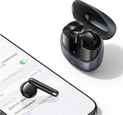 Lagana polu-uložna konstrukcija (oko 3,6 g po slušalici) od materijala ABS i PC osigurava udobnost i pri dugom slušanju. Slušalice se nakon otvaranja futrole automatski povezuju s vašim uređajem, dodirne kontrole olakšavaju upravljanje glazbom, pozivima i aktivaciju glasovnog asistenta. Punjača futrola služi kao praktičan powerbank za slušalice, a zahvaljujući USB‑C konektoru punjenje je brzo i jednostavno.