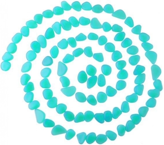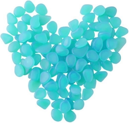 Dekorativni svjetleći kamenčići u plavoj boji tijekom dana upijaju svjetlo, a noću nježno svijetle, stvarajući upečatljiv vizualni efekt bez električne energije. Izrađeni su od izdržljive, netoksične plastike s lagano poliranim rubovima, prikladni za interijer i eksterijer – od vrtnih staza do akvarija. U pakiranju je 100 komada za kreativna aranžiranja.