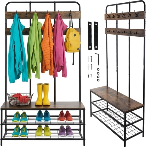 Praktično rješenje štedi prostor i drži sve na dohvat ruke – od kaputa i torbi do cipela. Protuklizne kapice na nogama štite pod od ogrebotina i jamče stabilnost čak i pri većem opterećenju.