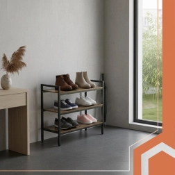 Stabilan praškasto lakirani okvir, tri prostrane police i protuklizne zaštitne kapice osiguravaju dug vijek trajanja, zaštitu poda i praktično odlaganje obuće od tenisica do čizama. Montažu ćete obaviti u trenu – u paketu je sve potrebno.