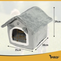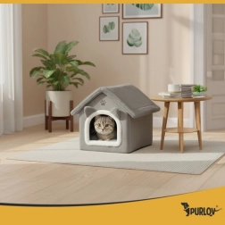 Kućica Purlov idealna je i kao skrovište i kao udobno mjesto za izležavanje. Mačka se može sakriti unutra za miran san ili se smjestiti na vrh. Plišani materijal pruža toplinu i udobnost tijekom cijele godine, dok lagana konstrukcija osigurava ugodnu prozračnost u toplijim mjesecima.