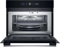 Ova moderna ugradbena mikrovalna pećnica spaja brzinu mikrovalova s rezultatom poput klasične pećnice. Zahvaljujući tehnologiji Crisp s nelepljivim feritnim tanjurom (maks. oko 210 °C) i grillu dobit ćete savršeno pečeno dno i zlatnu, hrskavu koricu – idealno za pizzu, quiche ili pomfrit.