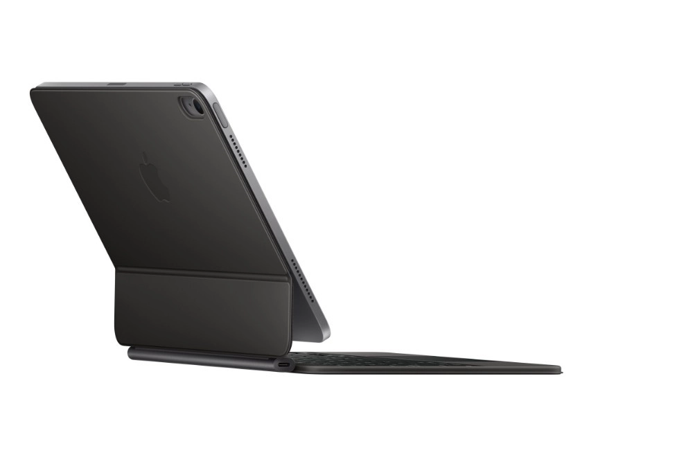 Magic Keyboard za iPad Air 11" (M3) donosi udobno tipkanje s mehanizmom škarica i hodom od 1 mm, veliki stakleni trackpad s podrškom za Multi‑Touch geste i preciznim pokazivačem te praktičan red 14 funkcijskih tipki za brzu kontrolu svjetline, glasnoće i drugih prečaca.