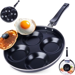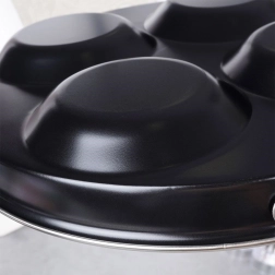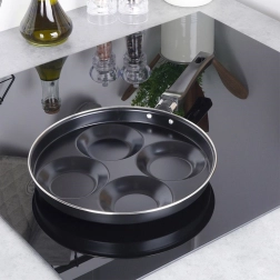 Četiri okrugle udubine promjera 8 cm osiguravaju ujednačen oblik i pečenje svakog jajeta ili popečka – idealno za brzi i uredni doručak.