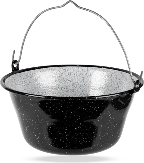 Praktična ovjesna ručka omogućuje sigurno vješanje na tronožac i udobno prenošenje. Kotlić je sjajan suputnik za vrtna druženja, kampiranje i vikend kuhanje uz vatru. Sitne tvorničke nepravilnosti emajla (izbočine, neujednačen tisak) prirodne su i ne utječu na kvalitetu ni funkcionalnost – naglašavaju tradicionalan način izrade.