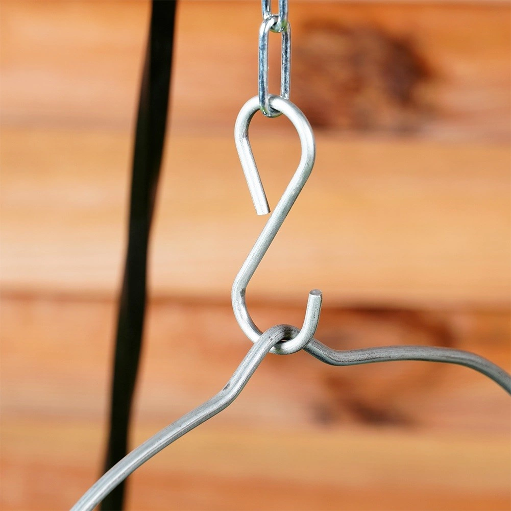 Robusna ovjesna ručka i kružno žičano ojačanje ruba osiguravaju stabilnost pri vješanju na tronožac i lako prenošenje.