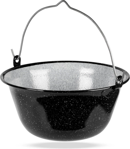 Tradicionalni emajlirani kotlić promjera 36 cm i zapremine 9,5 l prikladan je za kuhanje, pirjanje, pečenje i prženje iznad otvorene vatre, na roštilju ili na tronošcu. Kvalitetni debelostjeni čelik s emajliranim slojem u crno-bijeloj izvedbi osigurava dug vijek trajanja i jednostavno održavanje. Jela pripremljena u kotliću imaju neponovljiv okus i aromu.