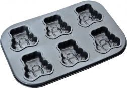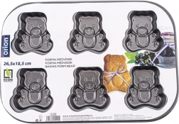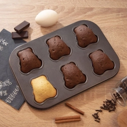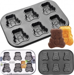 Ovaj kvalitetan kalup dimenzija 26,5 × 18,5 × 2,5 cm stvara 6 detaljno oblikovanih medvjedića veličine cca 6 × 5,5 cm. Zahvaljujući neljepljivoj površini tijesto se ne lijepi, a gotove komade lako ćete izvaditi bez oštećenja oblika. Savršeno za omiljene pečene medvjediće sa slatkim nadjevom ili jednostavno biskvitno tijesto.